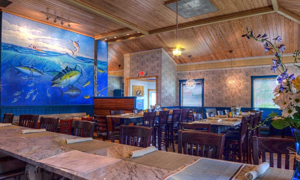 Fat Tuna Grill & Oyster House is renowned for its fresh seafood and vibrant atmosphere. The restaurant features a diverse menu with specialties like raw oysters and Williamsburg-style shrimp and grits, complemented by a selection of drinks. This local favorite is known for its quality service and welcoming environment.